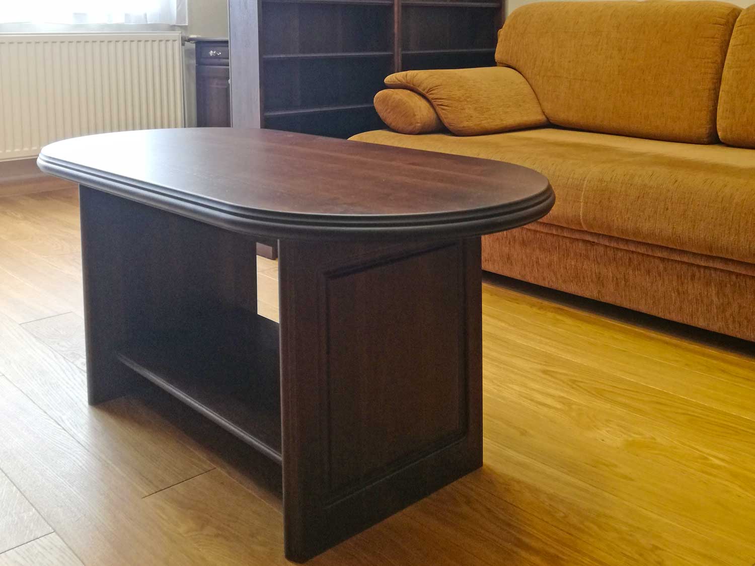 Konferenčný stolík je dôležitou súčasťou obývačky. Nejde len o miesto pre nápoje, občerstvenia a pre TV ovládača, ale to je miesto pre spontánne jedenie alebo slúži ako pracovný stôl. Preto je dôležité,aby to bolo z masívneho dreva, lebo je nezničiteľné a extrémne odolné.